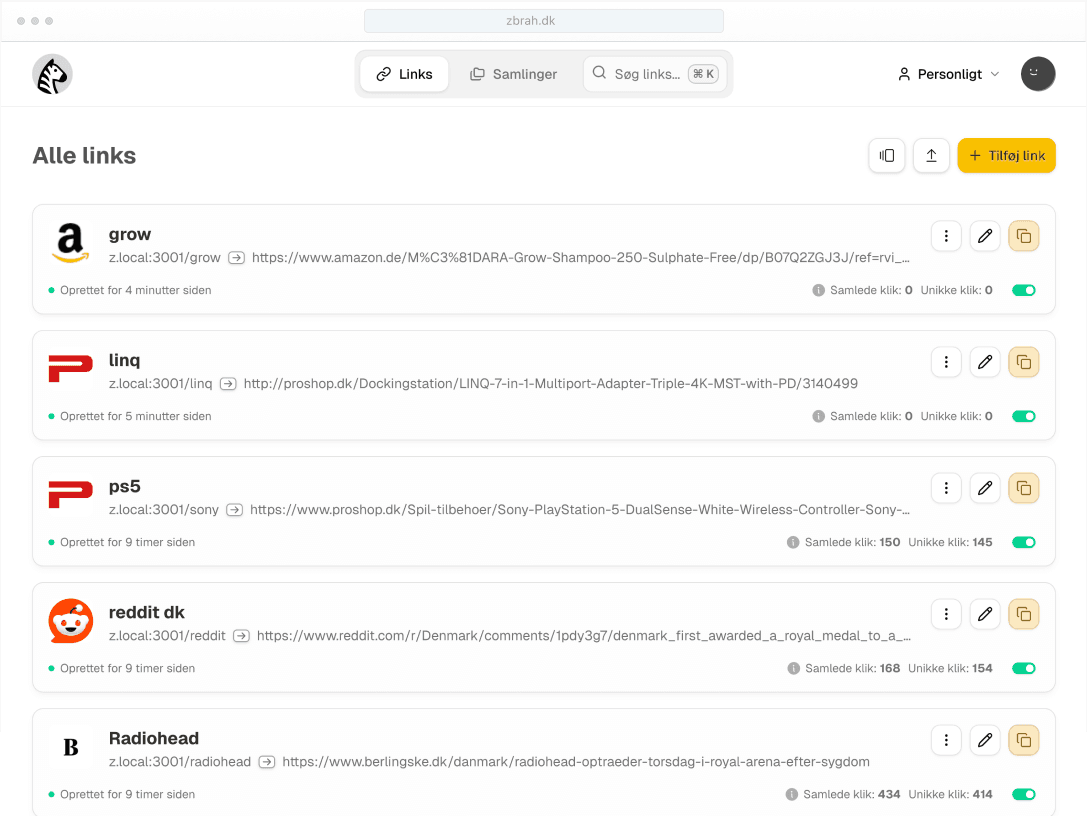 • Create short links using the shortest TLD available - z.dk